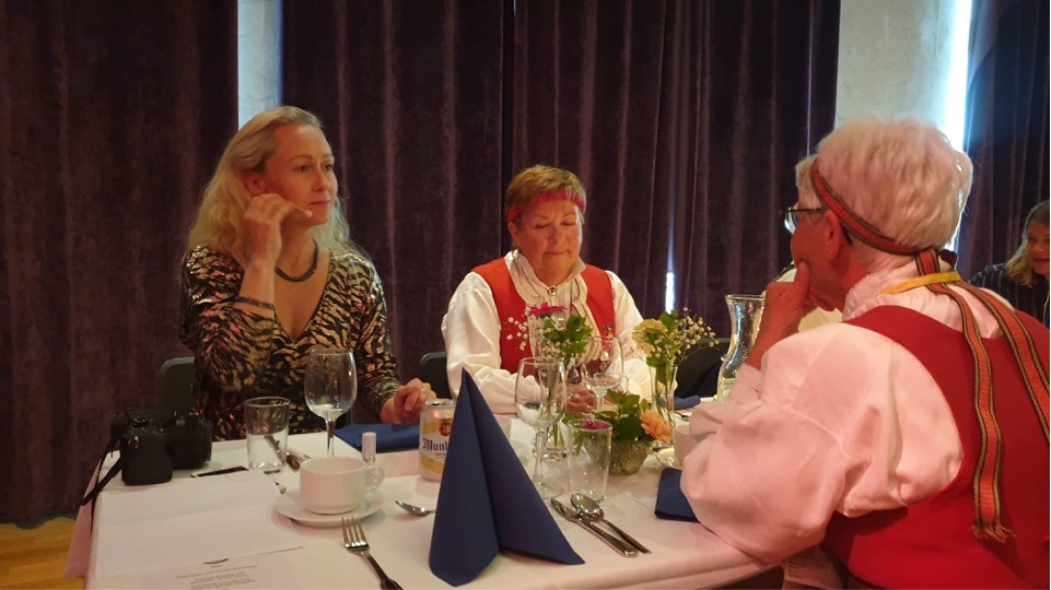 Vi fortsatte dagen med Bankett i Festiviteten kl 1900. Her hadde damene pyntet seg og mange hadde bunad fra sin landsdel.